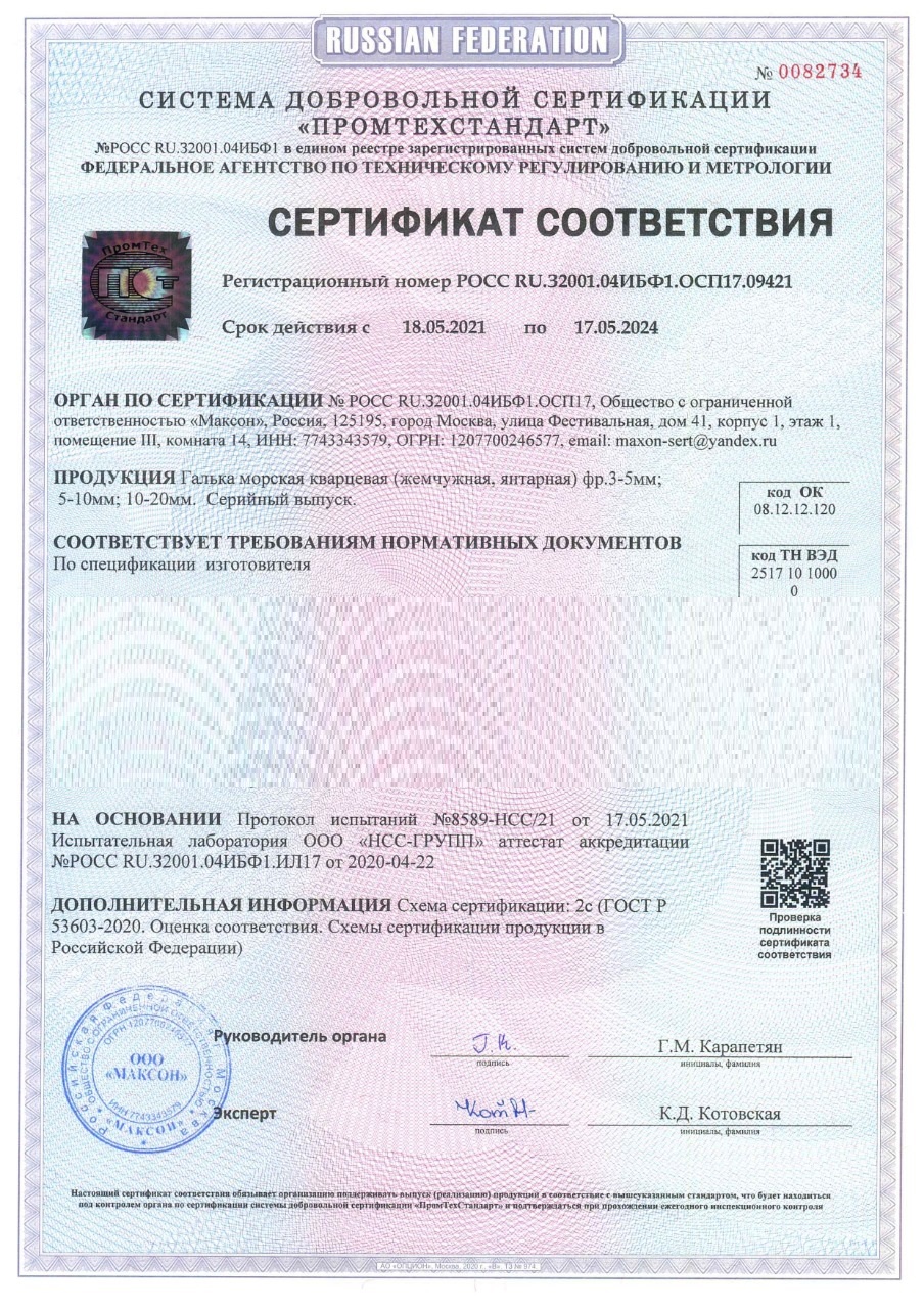 Сертификат соответствия на гальку морскую